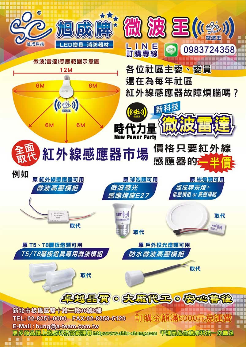 ((LED照明))旭成科技-微波王微波感應燈座、感應模組系列型錄~大樓公共空間節能省電最佳利器!!