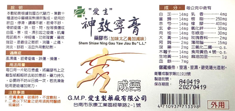 愛生 神效寧膏 每包10片裝 酸痛貼布 最新效期2027.04.19