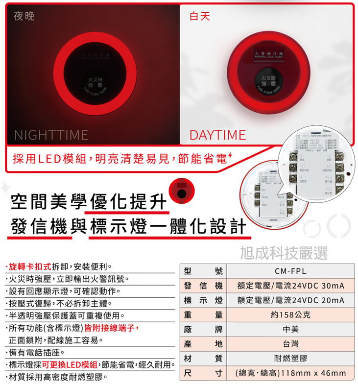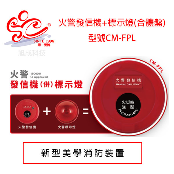 新美學設計 火警發信機+標示燈 合體盤 型號CM-FPL消防認證品 訂製品