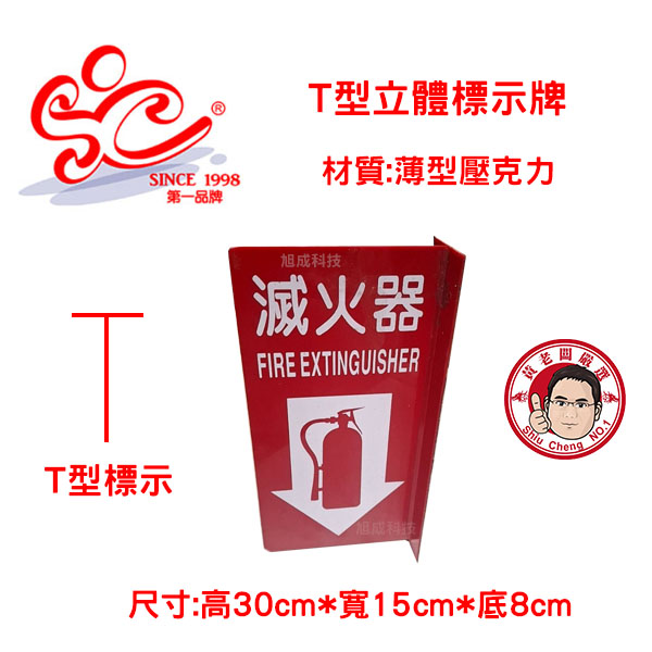 薄壓克力 T型立體式 三角式 滅火器標示牌 寬15*高30*底8cm 【訂製品】