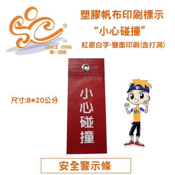 客製品 小心碰撞 安全警示條 塑膠帆布印刷標示 帆布條 尺寸8*20公分(最低訂購量50片)